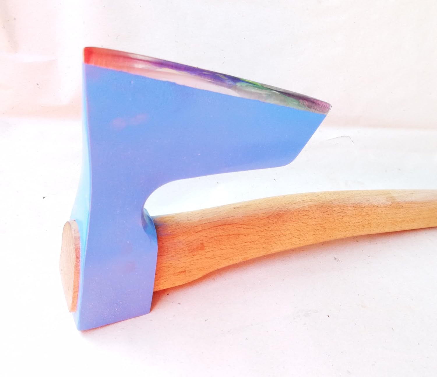 BEARDED STEEL AXE with curved handle. Suitable for chopping and for splitting. The bearded axe is especially designed - the front part of the axe is for splitting the logs and the rear part is designed for chopping. Compact and very reliable design. High quality carbon - chromium steel - AISI - 4150. Grinded and sharpened, tempered in oil and again slightly grinded. Painted with blue paint. The handle is beech wood covered with boiled linseed oil. Made of high quality steel: AISI-4150 Tempered! HRC-50-55 Sharp blade! Dimensions: Blade ~ 7 x 7 inches !!! Weight: ~2200 gr. or 4.8 lb Length 72 cm~ 28 inches