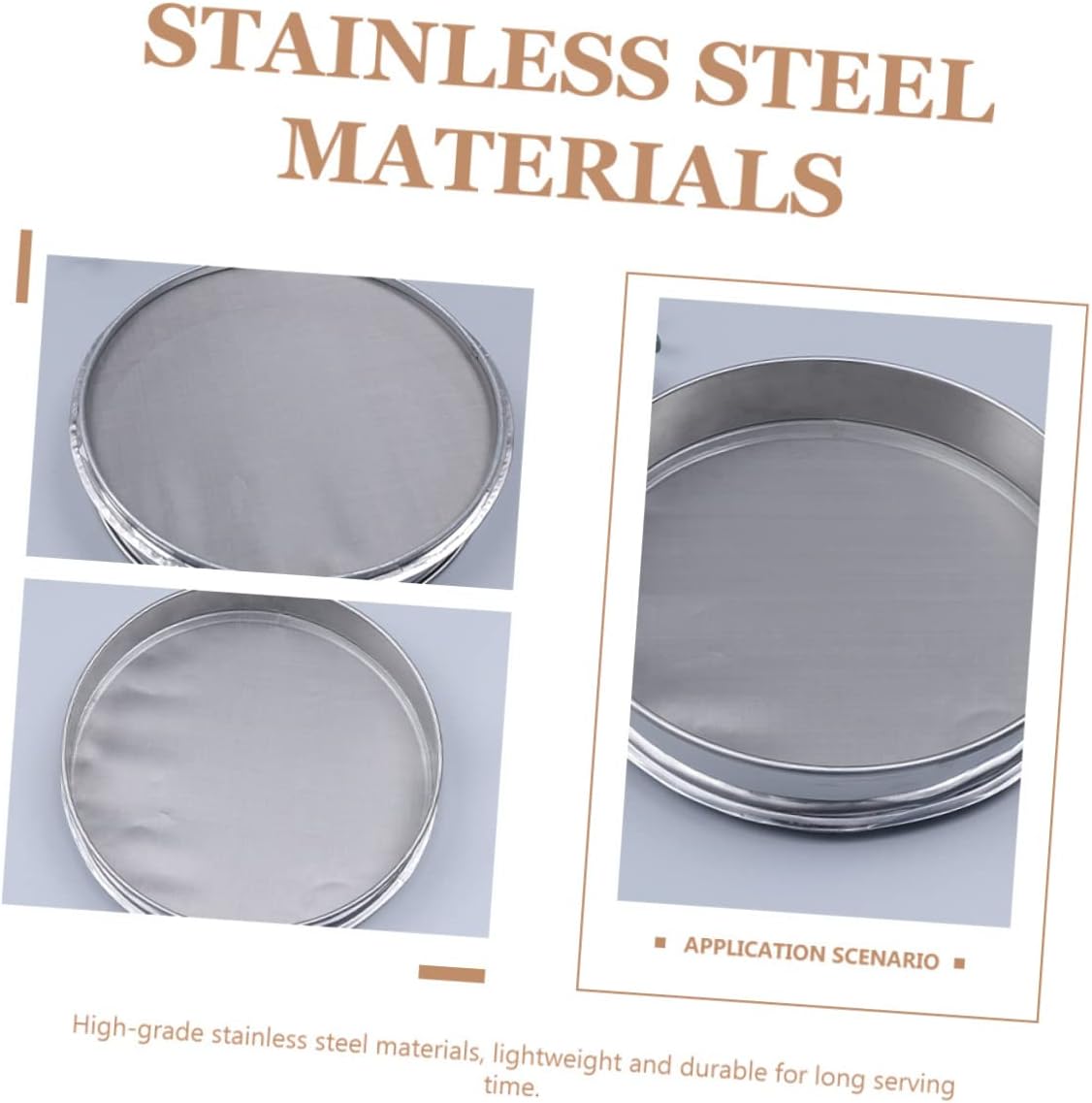 Package Include 1 x Screen Characteristics -Material: Stainless Steel Fine Mesh Strainer -Color: Silver Screen -Size: 35.00X35.00X6.50cm/13.76X13.76X2.55in Sifter - stainless steel , lightweight and for long serving time Flour Sifter for Baking. - Reasonable design, strong practicability. and design, reusable Household Sieve. - The portable design prevents falling off and is more assured to use Gardening Gadget. - Labor-saving tools, convenient, gardening and planting Sifter for Baking. - It' not easy to deform, not easy to fade, appropriate for kitchen and garden use Stainless Steel Sieve.Goods DescriptionMedicine Sifter It's also for sifting rice, grain, and so on, this sieve will bring much convenience to you.Baking Flour Sifter This item is manufactured with material for and long-lasting use. Powder Strainer This is for home, garden use, etc