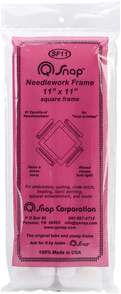 Q-Snap Frames are made from PVC tubing making them lighter and more durable than other materials. The clamp design for holding the fabric is gentle and simple to use. Just lay the fabric over the frame then gently push the clamps down stretching the material around the outside of the frame. The ribbed inner surface of the Q-Snap clamps hold the tension for your preferred adjustment. Simply turn the clamp outward to tighten or inward to loosen. Q-SNAP: Extension Kit. Extend a frame using this kit! You can extend an 11x11 inch frame to 14x14 inches or a 17x17 inch frame to 20x20 inches. Contains four 3-inch extenders and four 14-inch clamps. Made in USA.