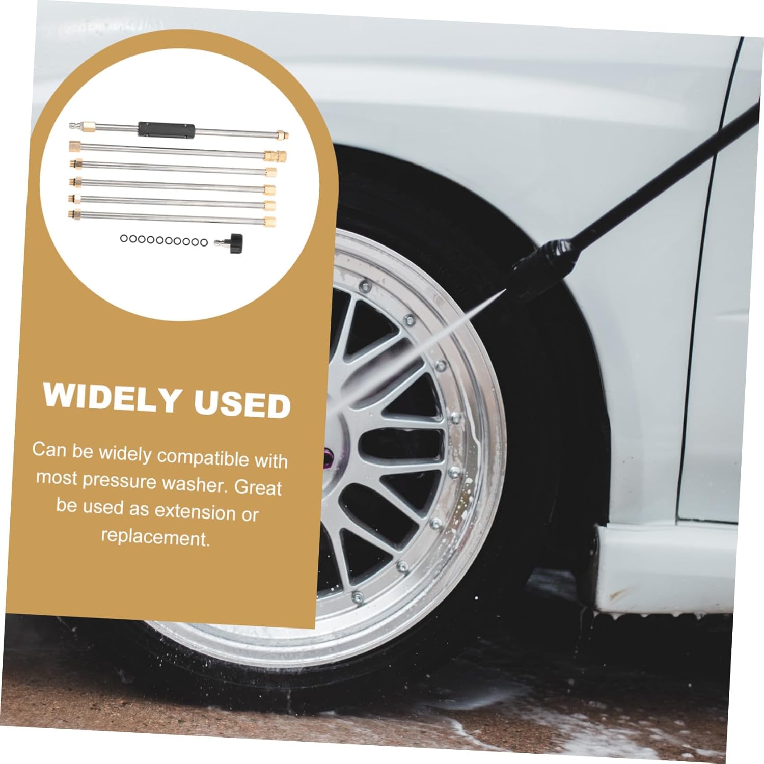 Package List 6 x extension rods 1 x nozzle 10 x sealing rings Characteristics -Color: Silver pressure washer extension hose -Product Info:Washer water gun set -Material: Stainless steel, rubber, copper pressure washer extensions -Package Size: About 41.00x8.00x6.00cm/16.14x3.15x2.36in High Pressure Extension Stick -Features with simple structure, which offers you convenient installation cleaning extension rod. -One-piece molding, smooth lines, can be well adapted to the car washing machine pressure washer extension pole for pressure washer. -Adopts precision production to enhances the stable characteristics and high reliability high pressure washer extension wand. -It can also be used outside, such as driveway, walkway, deck, roof and your car, etc Washing Lengthening Rod. -A perfect housewarming gift for your friends, showing your love and care power washing extender.Goods Descriptionpressure washer extensions It is easy to install and disassemble, which will to your work.pressure washer extender pole It has a wide range of uses and can be well applied to car washing and floor washing.high pressure washer extension wand Portable pressure washer extension tool wand, which can better meet your needs and provide for your