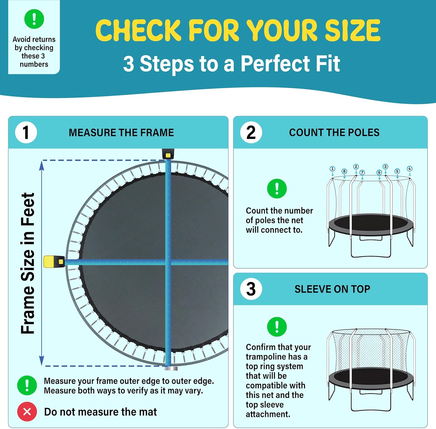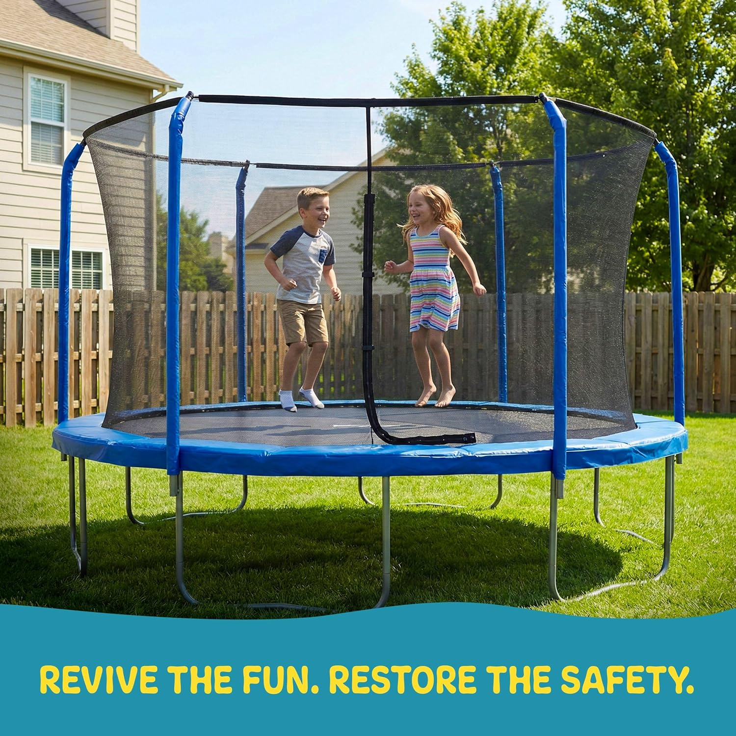 Ensure your backyard remains a hub for fitness and recreation with the Machrus Upper Bounce trampoline enclosure net. The safety-forward design creates a protective barrier between the jumper and the steel frame, helping reduce contact with springs or poles. Crafted from high-quality material, this trampoline replacement safety enclosure net offers superior sun protection and weather resistance. It maintains its structural integrity through intense sun and storms, making it a reliable choice for year-round outdoor use. A dual-closure zipper with safety buckles adds controlled entry and exit. This adjustable trampoline net stays securely fastened during active use, yet opens smoothly when needed. Installation is seamless and efficient. This lightweight and foldable safety net for trampoline fits round frames from major brands. The durable mesh maintains visibility while standing up to sun exposure and changing outdoor conditions. Our round frame trampoline net is ideal for seasonal refreshes, replacing worn netting, or restoring your backyard trampoline to safe, reliable performance.