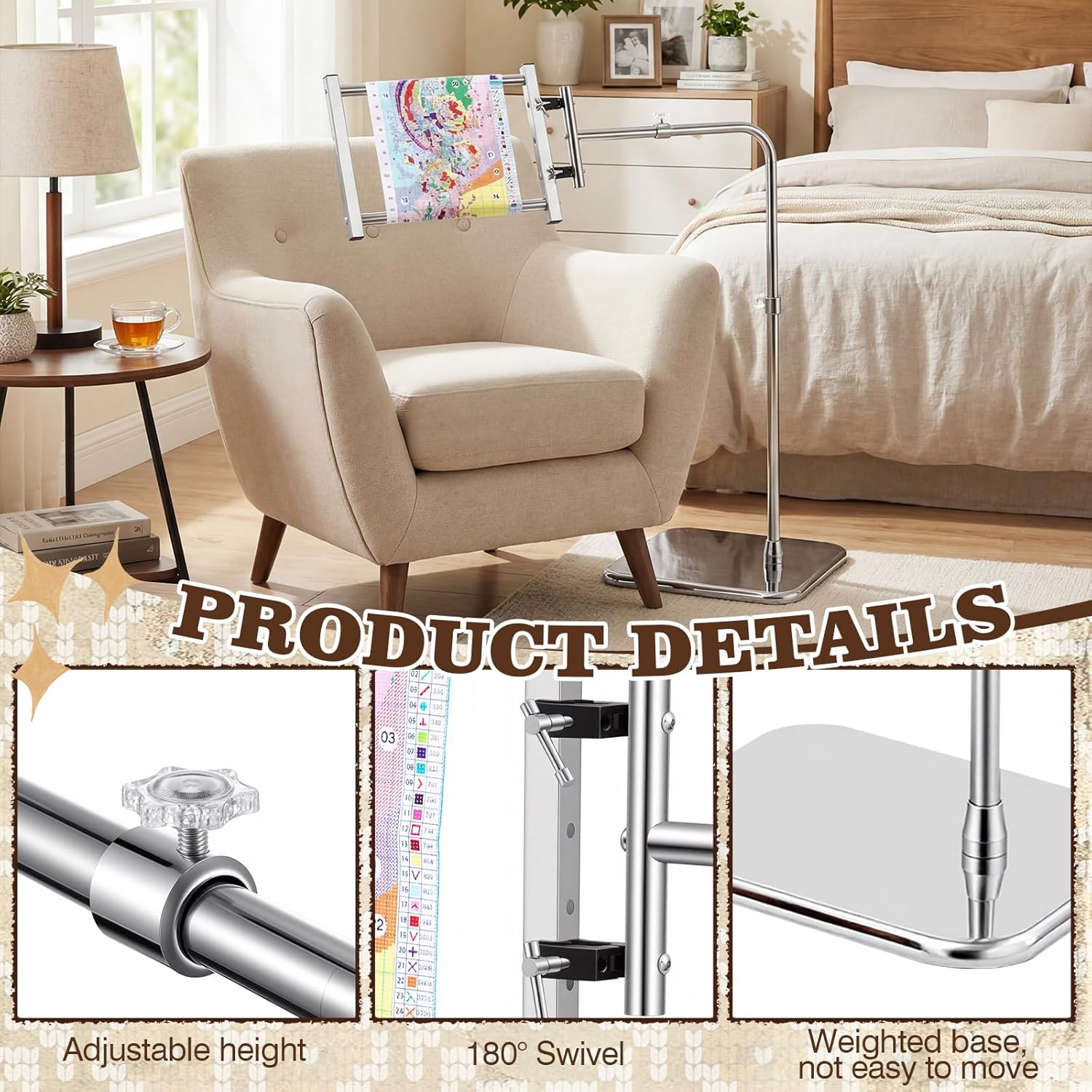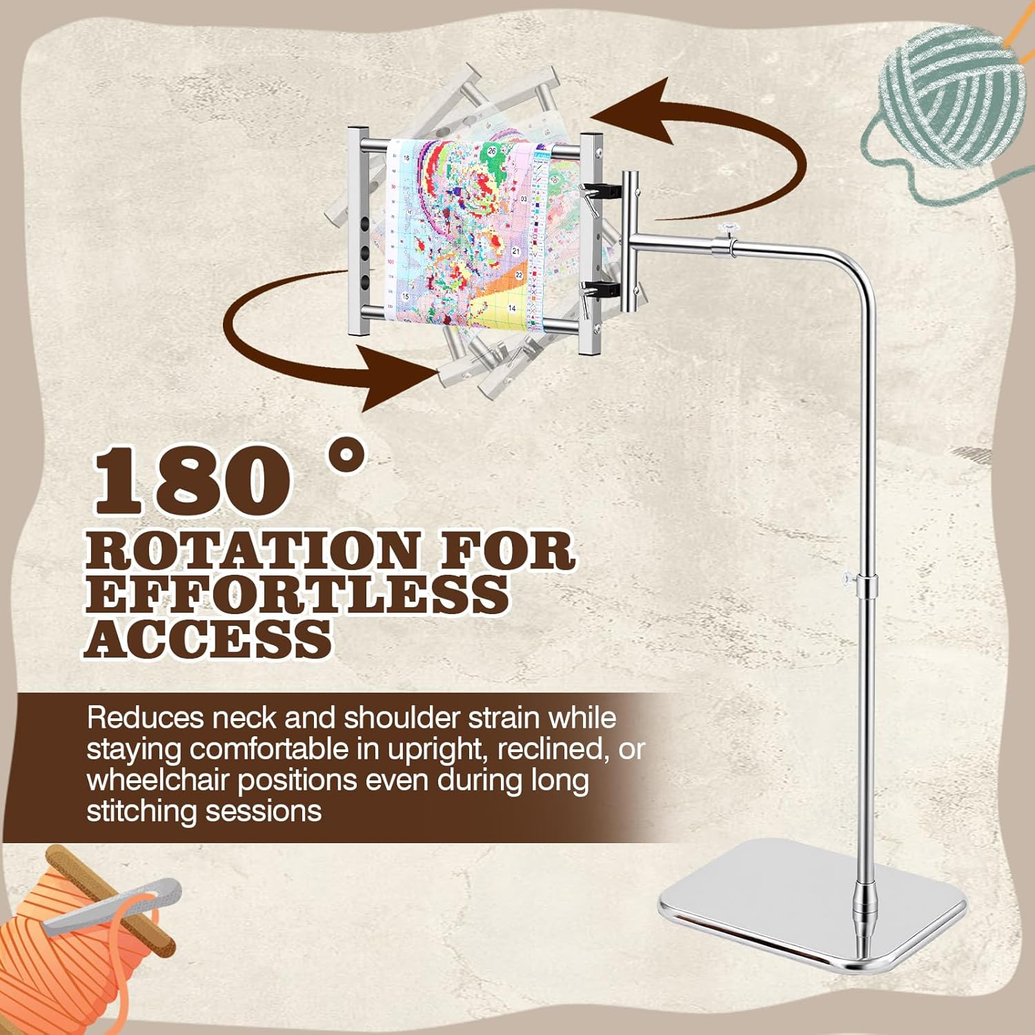 • Easy Assembly: this needlepoint stand base features a tool-free design for quick and efficient assembly; Key components can be tightened by hand; All adjustments, including height and clamping force, are tool-free, making the frame simple and intuitive to use; This needle and thread holder is ideal for everyday enthusiasts and efficiency-conscious professionals, a reliable choice for every embroidery lover